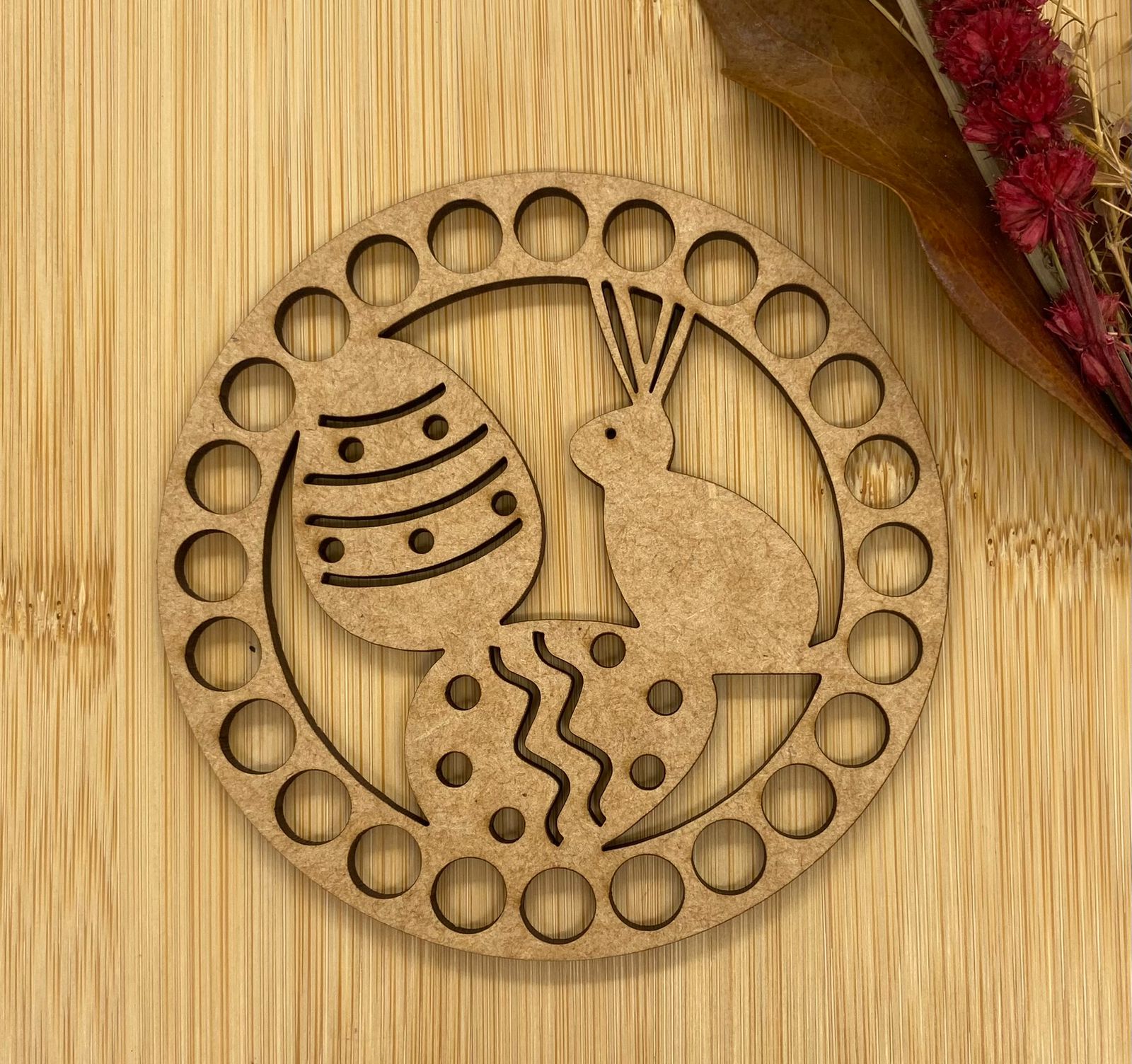 Base de MDF para cesto de crochê redonda com DesenhosBASE, 3mm espessura e furos com 7mm.