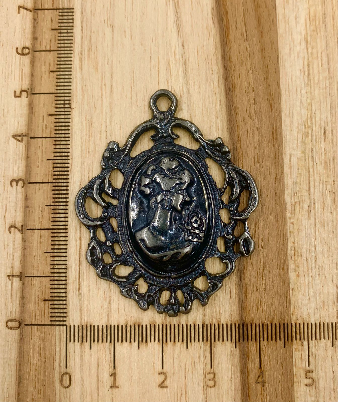 Pingente Metal Camafeu Prata Velho